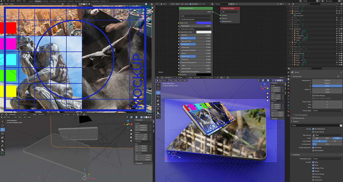 Blender modelling and render along with setup of routines to produce mockup imagery when presenting project cases.
